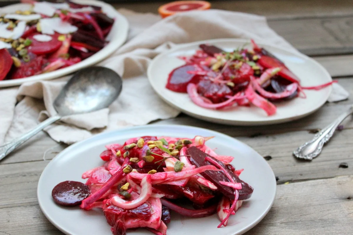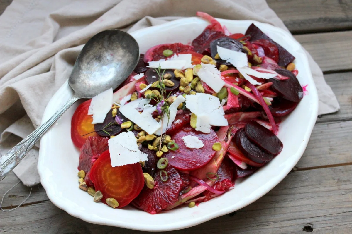 Fennel, blood orange, beet, mint and pistachio salad